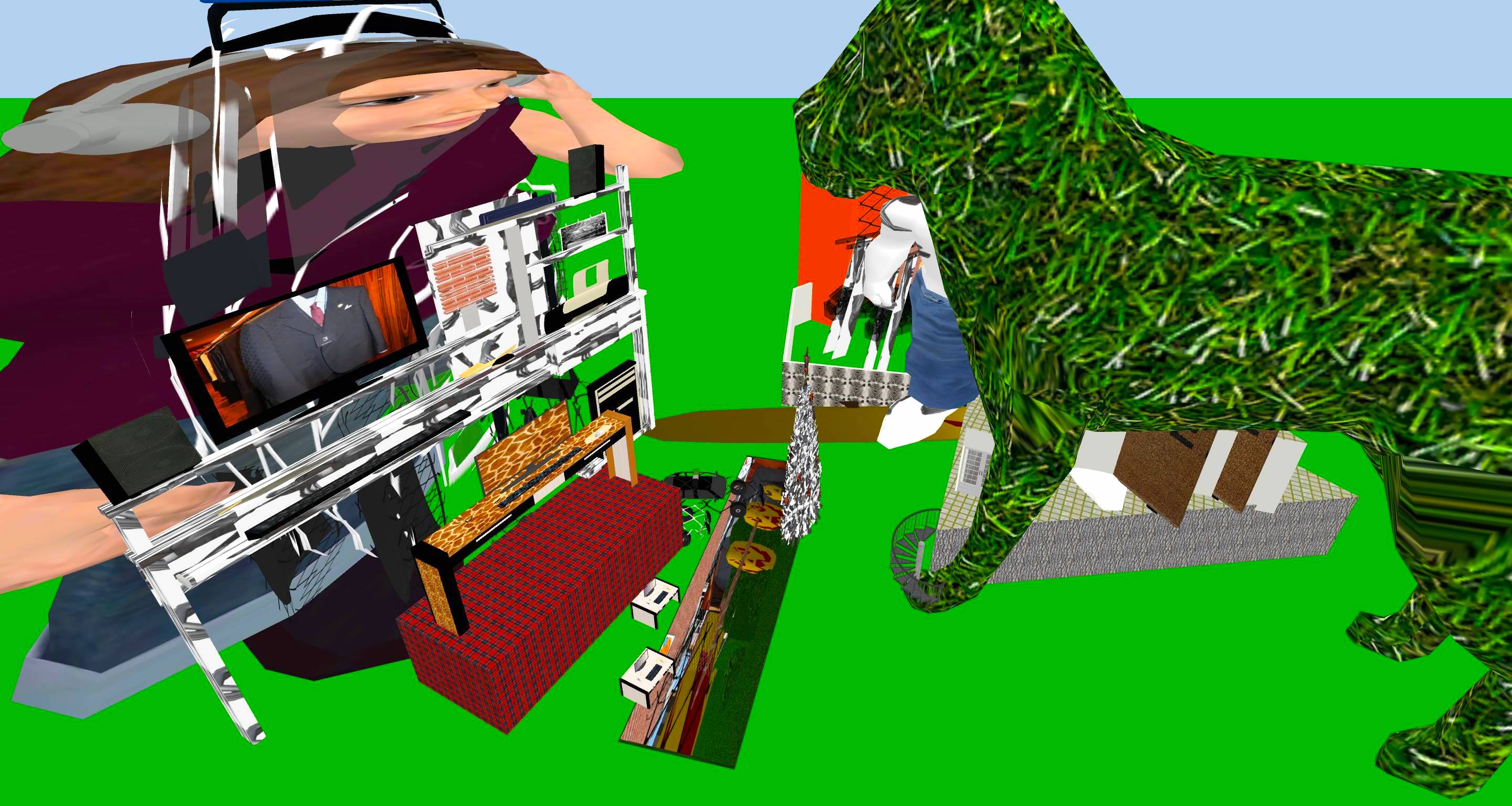 The four of us are driving. Charlotte, the only other person in the car I know, is sitting with me in the back. She was a major crush of mine in elementary school, which is relevant. Her brown eyes glance at me, while her hand begins to rub my thigh slowly and steadily. But I'm distracted. The passing suburbia starts to pixelate and compress. No one in the car pays any mind to this transformation. I listen to the voice of my father announce; "it's going to be like medieval times, they're doing this to everything". He is no where to be seen, yet his voice sounded like an intercom filling the vehicle. No one pays any mind to this either. Attempting to compete with the blaring music in the car I yell "this kinda sounds like sorry for party rockin' by LMFAO The woman in the front passenger seat turns around and smiles revealing a set of brilliant bright white teeth. She is very attractive to me. She turns back around and the song came on- sorry for party rockin'. She turns and stares at me again expecting me to know the lyrics. And I don't, so I pretend to know them. I am completely out of sync with the song and she could tell, resulting in my total embarrassment. This made her smile even more. The car parked ahead of a street corner, and the resolution of our environment got crisp. We all get out and walk toward a cylindrical glass skyscraper. People are rushing to enter this building. It is an entrance to a subway station. The one other guy in the car walks ahead of Charlotte and her friend. I catch up to him. He is a stocky asian man wearing an orangish yellowish t-shirt which is oversized. He looks as if he is in his late twenties. We say nothing to each other yet walk side-by-side. Pixelation takes hold again shifting the environment in which we move throughout. I am less anxious about it now. And we get on an escalator and head underground. The point of the video game is to move surface textures from various sources and place them onto new forms. One looks like a cow. I am in a cave. That is an apt description of the first level. The only enemies you encounter are boxers that fight you. Although, if you avoid the secret booby trap integrated into the flooring, the door won't open and they won't attack. I am home. Me and Hannah are sleeping together, laughing, in love, overall having a great time. I am at Alec's house. He is telling me that his parents are moving across the bridge. This is nonsense. We are in Canada and his parents live in Germany.